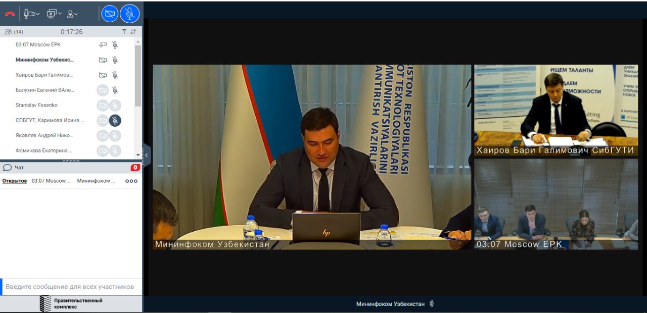 В мероприятии приняли участие более 30 экспертов из обеих стран. Повестка заседания включила вопросы сотрудничества России и Узбекистана в области развития цифровой экономики, телекоммуникаций, образования в сфере ИКТ, инновационных центров и управления технопарками, а также цифрового здравоохранения.